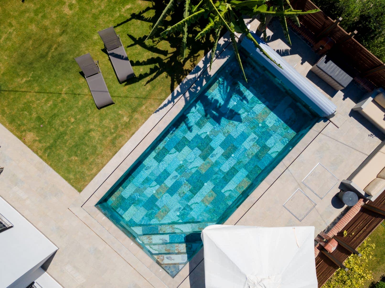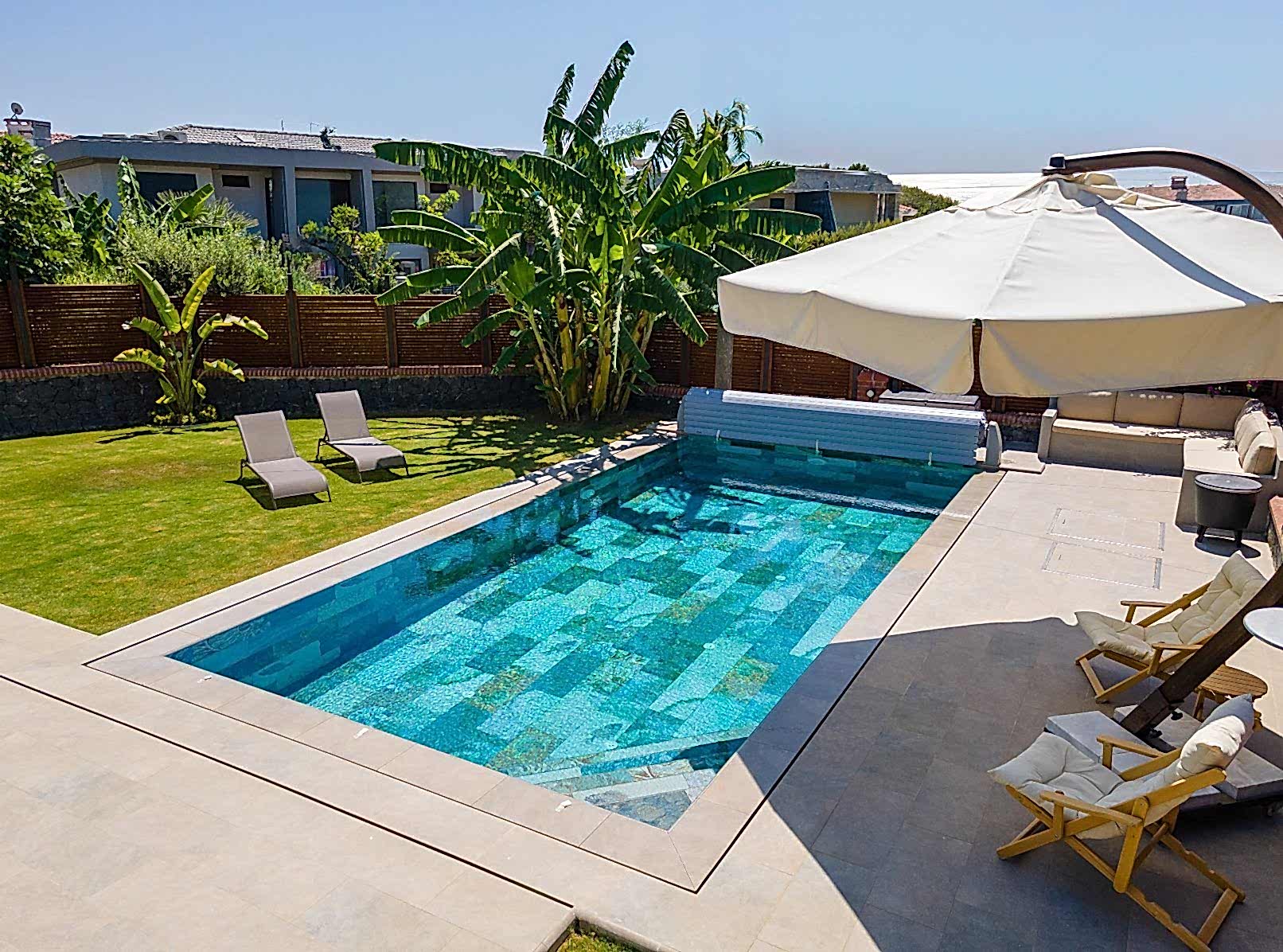 • Teras ile havuz etrafının bütünlüğünü tek tip porselen kullanarak tam bir bütünlük sağlandık.