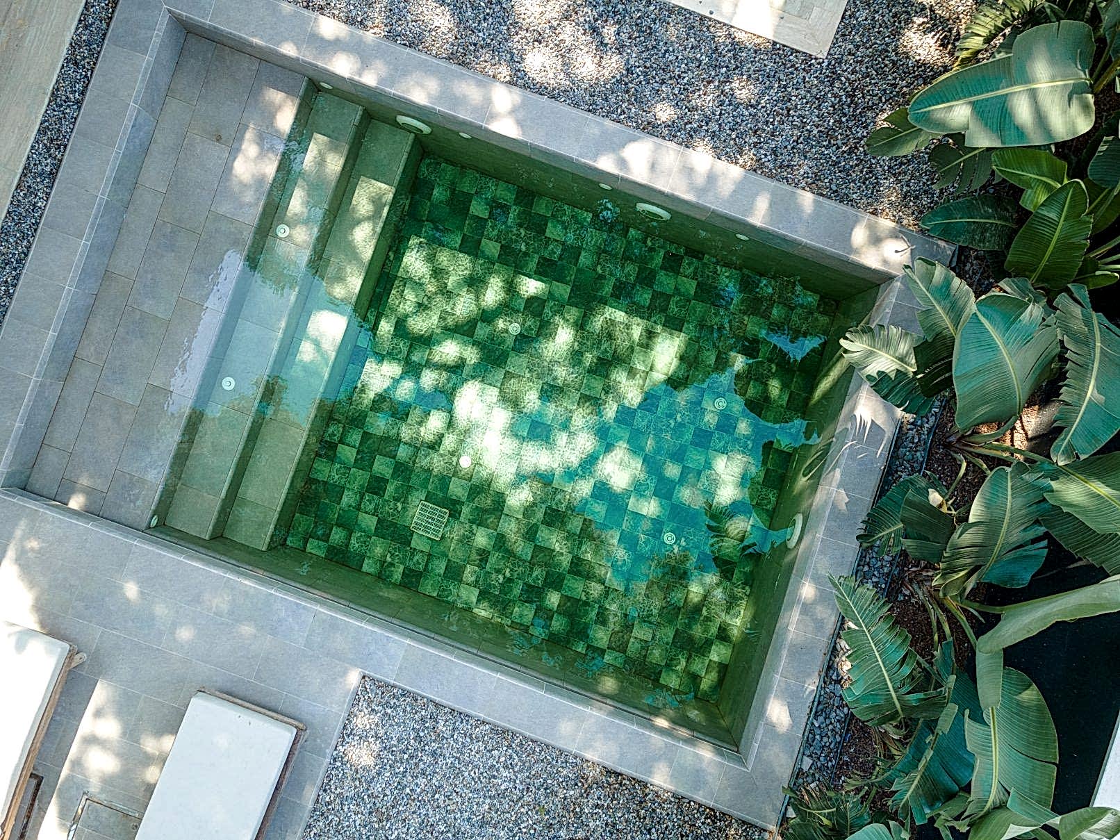 Çeşme Ilıca Şantiye Evleri projemizdeki yüzme havuzunu müşterimizin isteği üzerine özel olarak tasarladık;