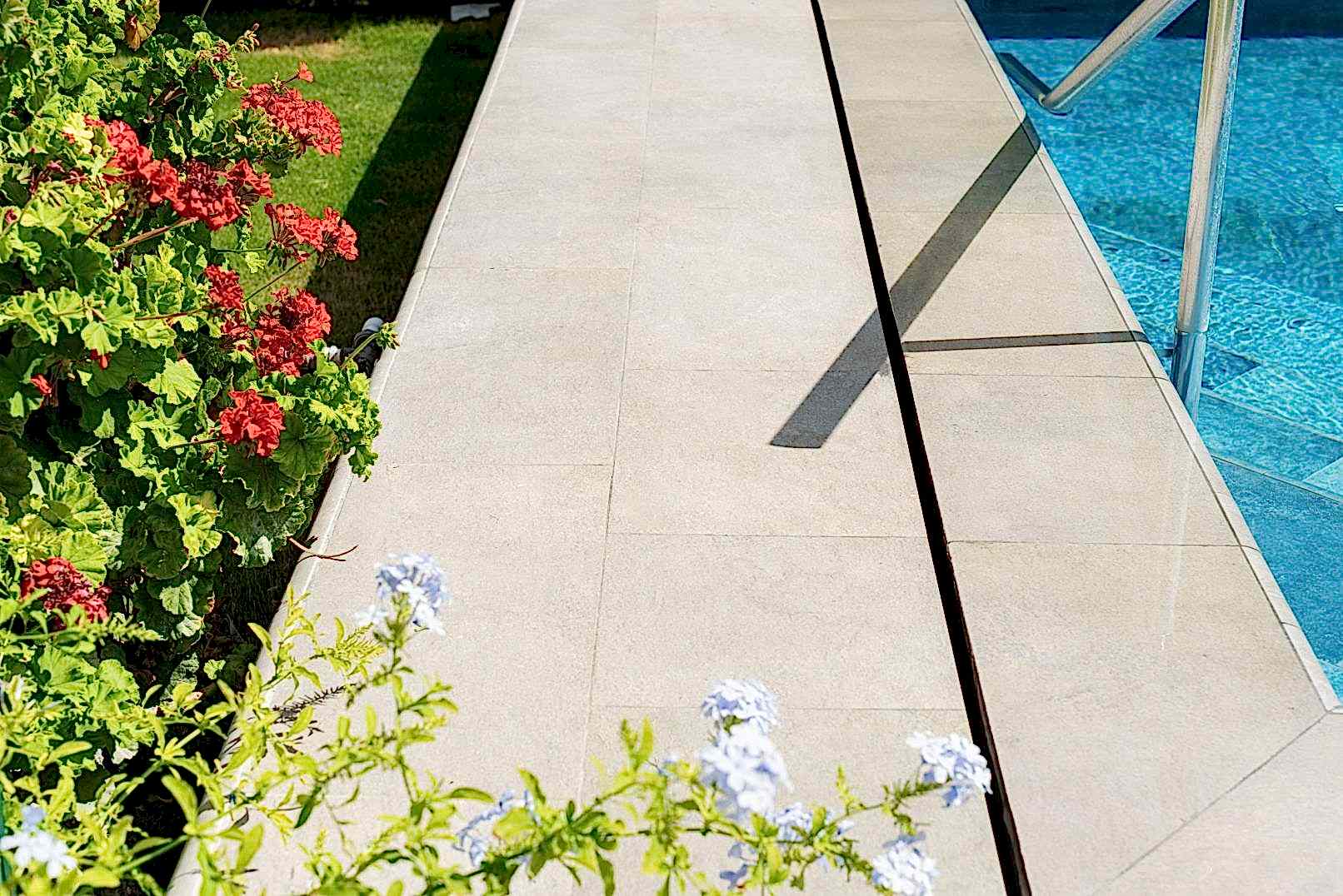 * Havuz etrafında 4×33 Serapool Natural Seri Mocha Birleştirme Dış Bükey.